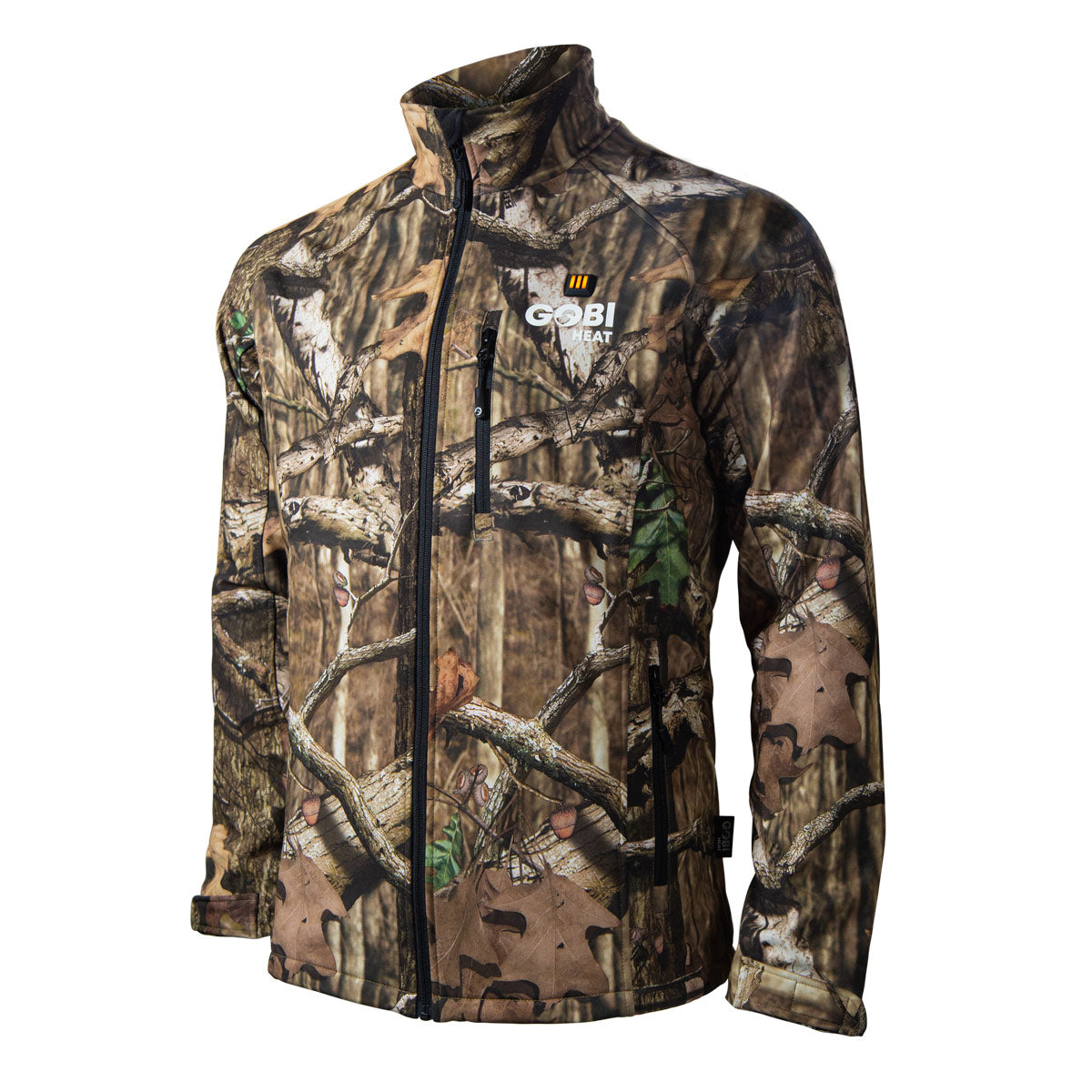 Get ready for the hunt with the Sahara soft-shell heated camo jacket. Official Mossy Oak® Break up pattern. It is wind, water, and abrasion resistant and allows you to control your body temperature with three heat settings: Low, Medium, and High. Also, this jacket has three heat zones in the most effective locations, two zones in the chest and a large zone in the back.