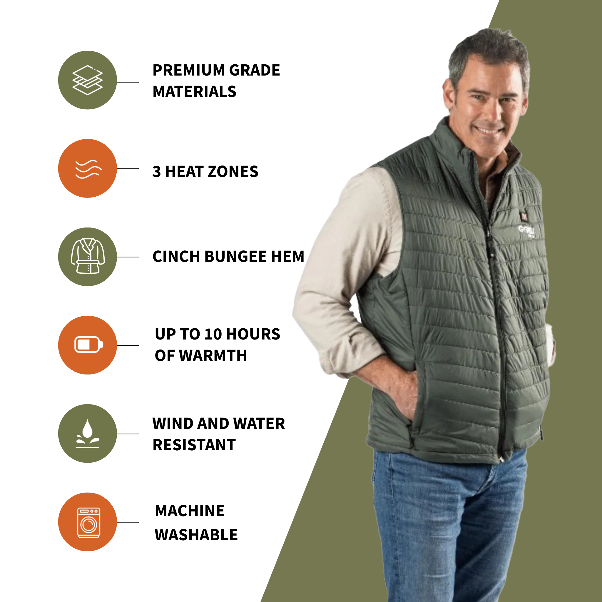 Dune Mens Heated Vest — 3 Bar Button Low/Med/High