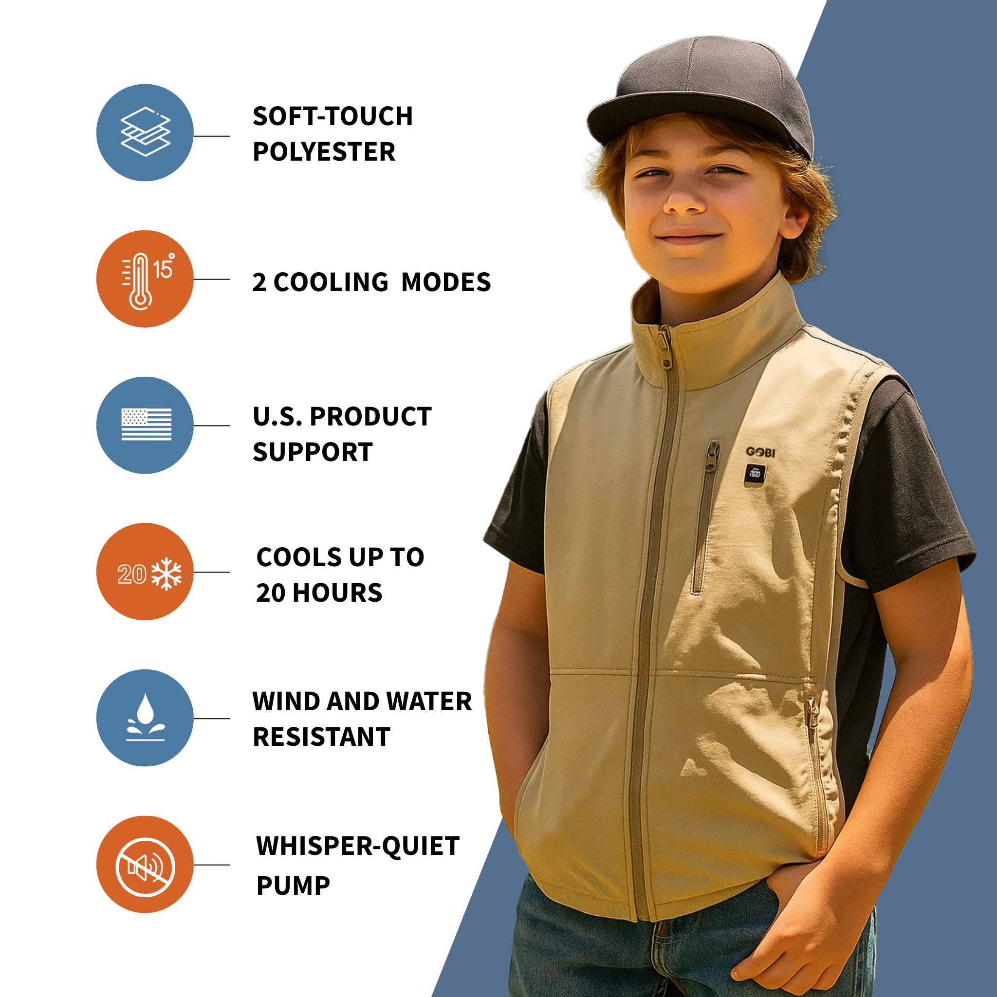 When the sun’s blazing and kids won’t stop moving, the Canyon Youth Cooling Vest has their back—literally. ❄️ Designed with comfort and performance in mind, it uses a whisper-quiet pump and included 10,000 mAh power bank to circulate ice-chilled water through built-in channels—keeping young adventurers cool without slowing them down.