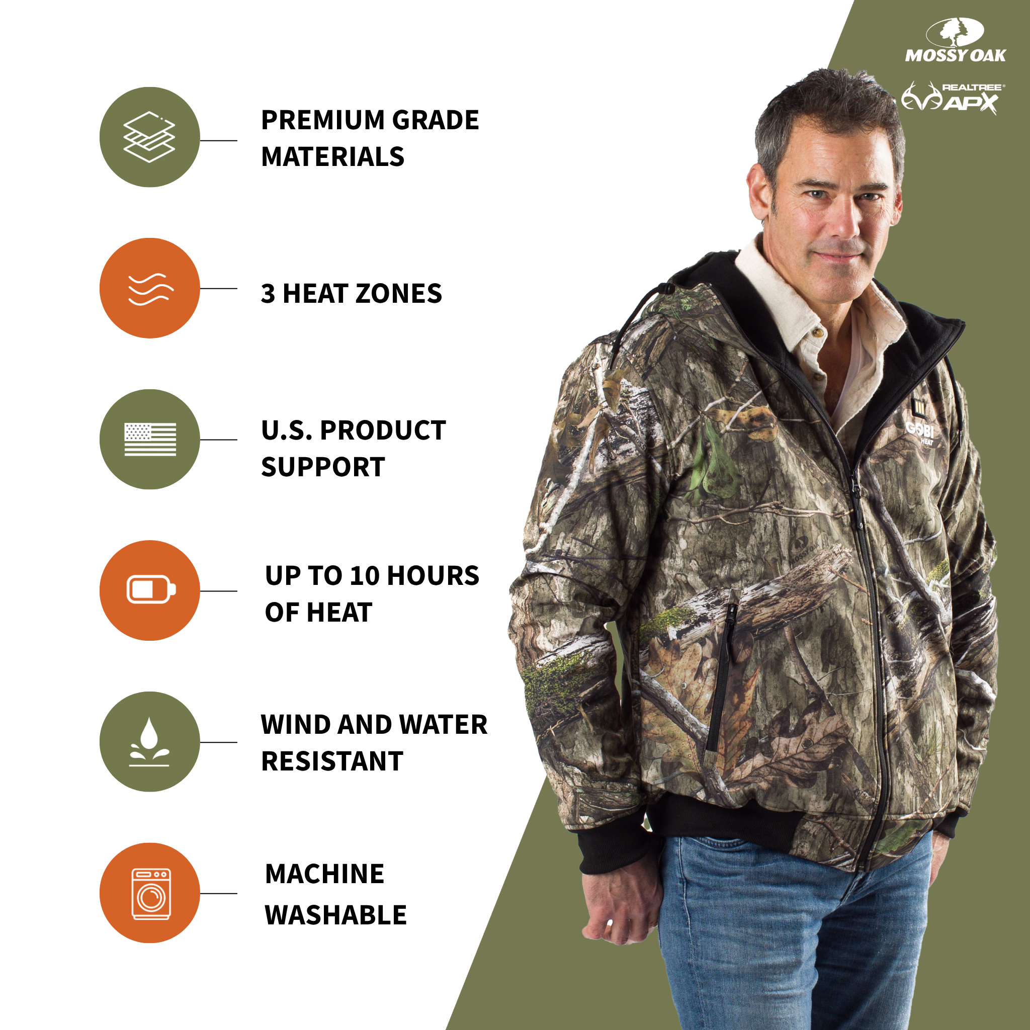 Shadow Men's Heated Hunting Hoodie - Available in Mossy Oak® and Real Tree® — 3 Bar Button Low/Med/High